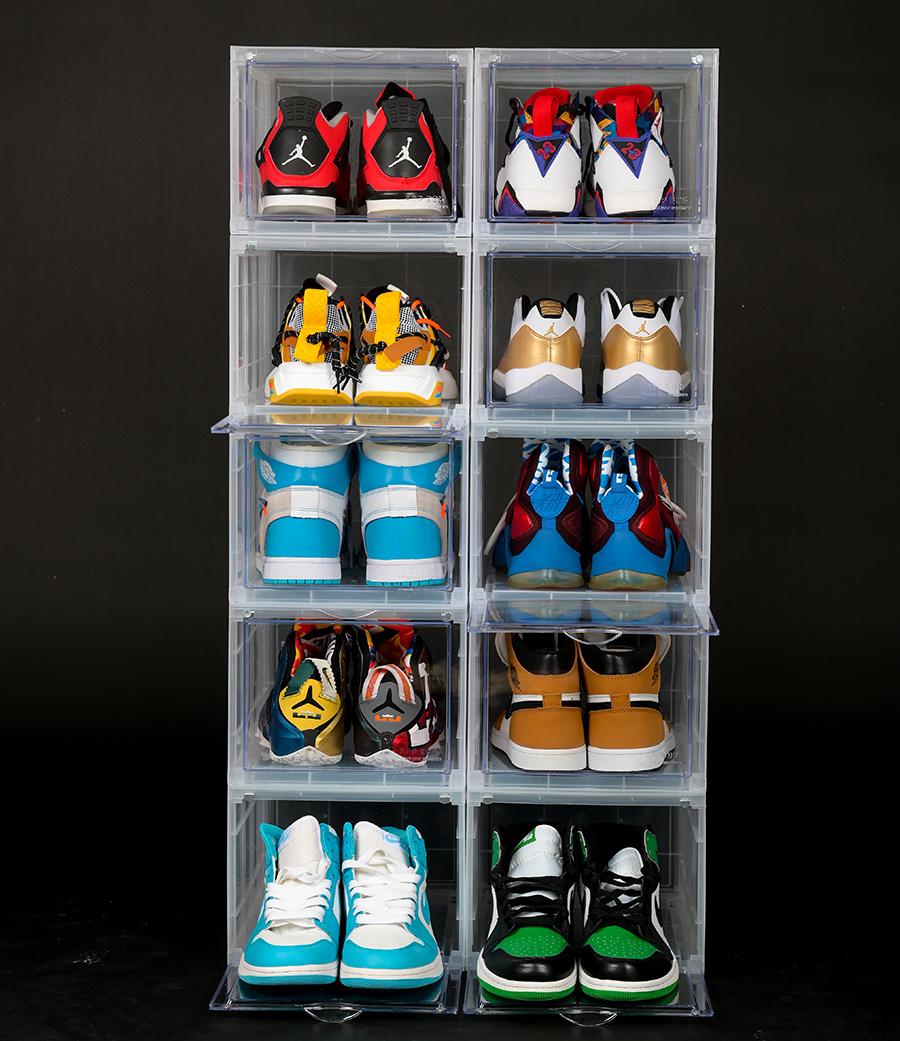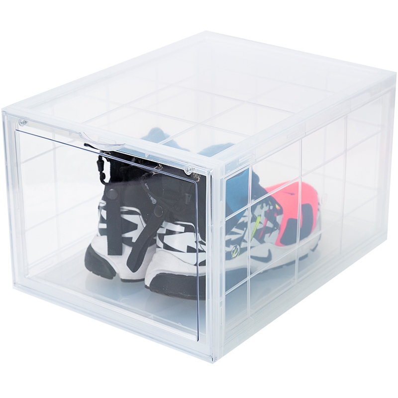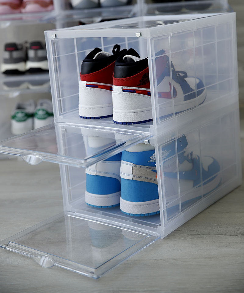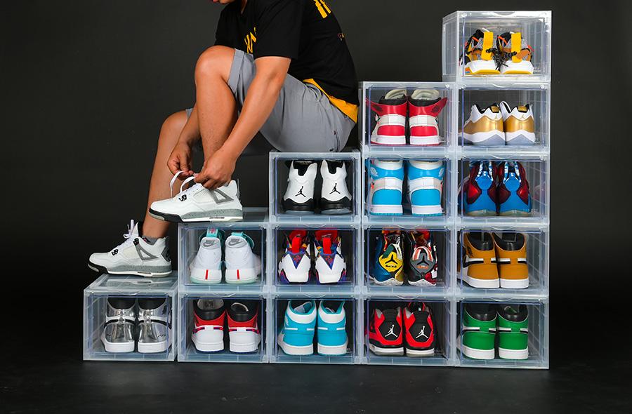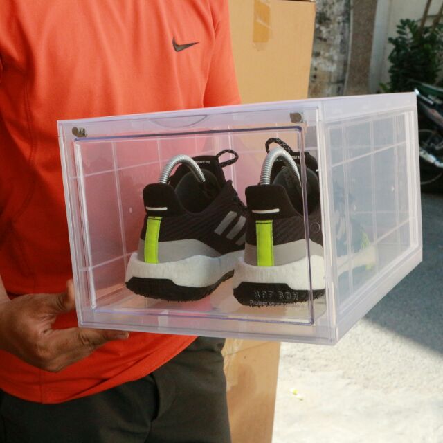 Thân hộp đựng giày trong suốt dễ dàng thấy được đôi giày trong hộp.
