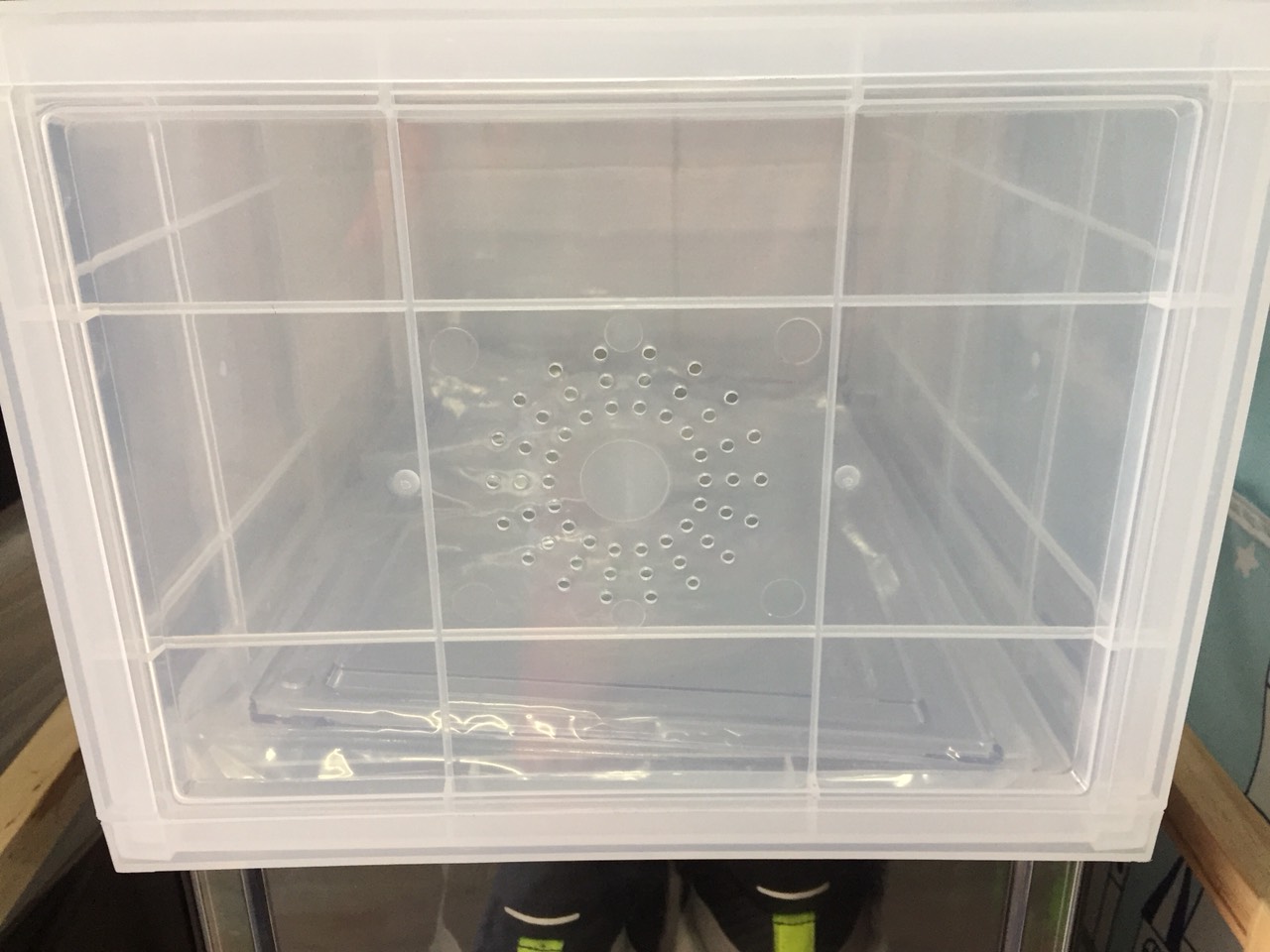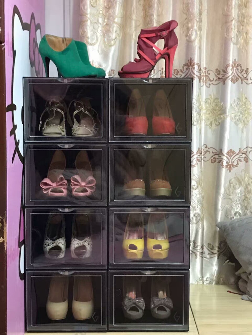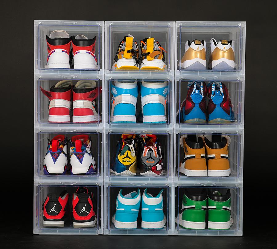 Thân hộp đựng giày trong suốt dễ dàng thấy được đôi giày trong hộp.